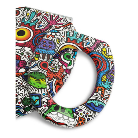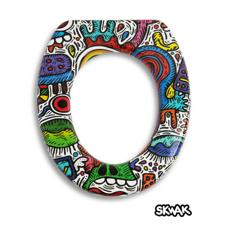 Entdecken Sie den Toilettensitz Crazy Maniac für Kinder - designt von dem talentierten Künstler Skwak, dessen Werke weltweit ausgestellt werden. Ein unentbehrliches Accessoire, um Ihre Kinder bei diesem wichtigen Schritt, dem Gang zur Toilette, zu unterstützen. Ein spielerisch bunter Kindersitz – entworfen als Kunstobjekt für Eltern und als lustige Erfahrung für Kinder, die von diesem Design bestimmt begeistert sofort sein werden.
