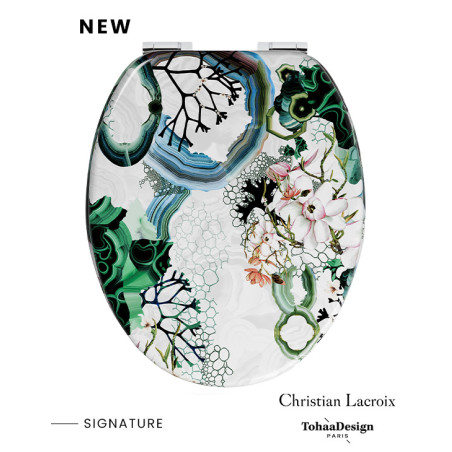 Entstanden aus der Zusammenarbeit zwischen der Maison Christian Lacroix und TohaaDesign, vereint der WC-Sitz "Algae Bloom" auf harmonische Weise kostbare Mineralien und Meeresflora. So entsteht eine neue Welt, in der Malachit schimmernde Moiré-Reflexe aufweist und Algen die feinen Muster der zartesten Spitzen nachahmen, um Ihrem Badezimmer einen Hauch von Eleganz und Raffinesse zu verleihen.