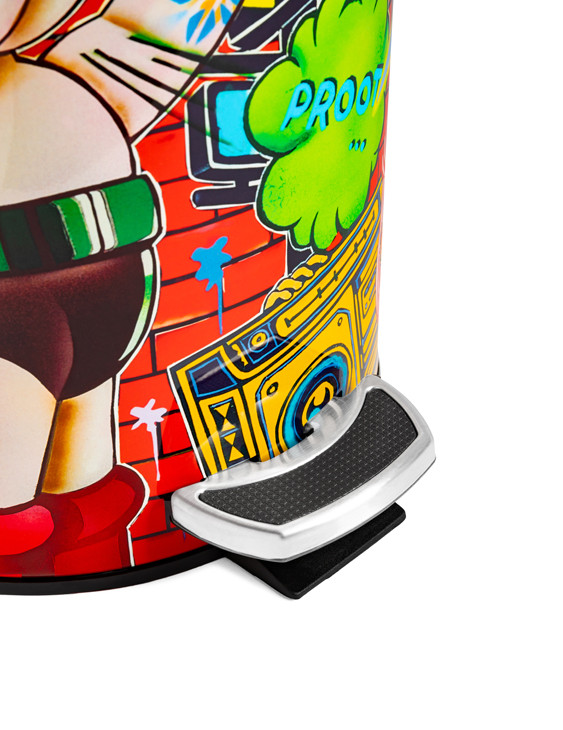 This colorful, unique bathroom wastebasket transports us into the dynamic, pop universe of the talented Guive Khosravi. Its "Vanity Fair" design for TohaaDesign is an explosion of flamboyant hues and original graphics.