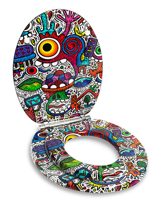 Discover the Crazy Maniac children's reducer, designed by the talented artist who now exhibits all around the globe. A must-have accessory to accompany your little ones during this important stage of going to the toilet. This playful, colorful, and arty reducer is designed to be both a design object for parents and a fun experience that will immediately appeal to children.