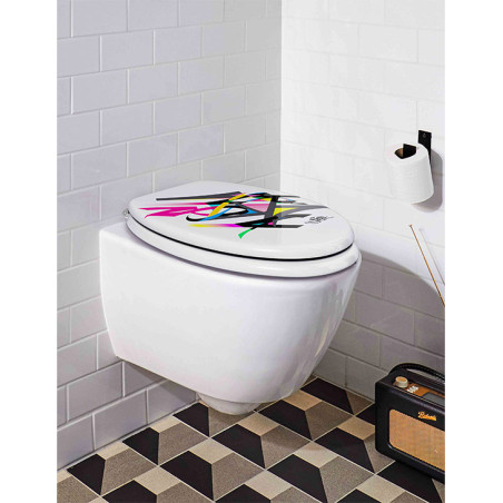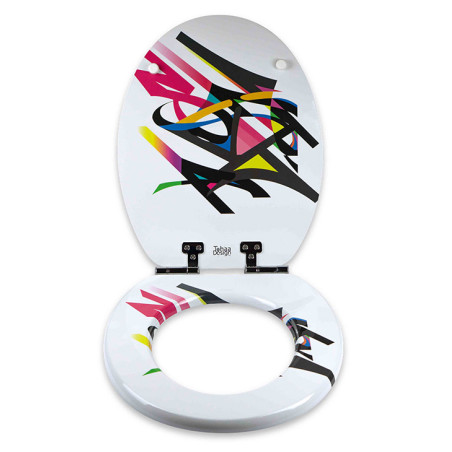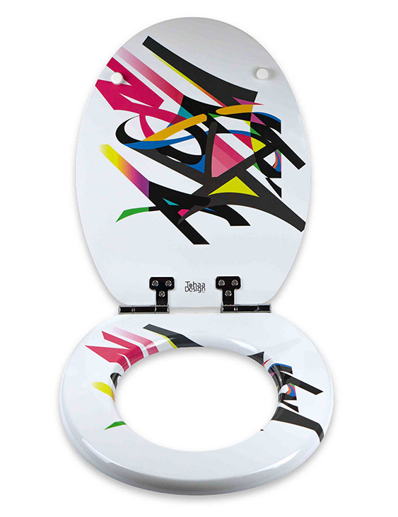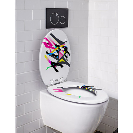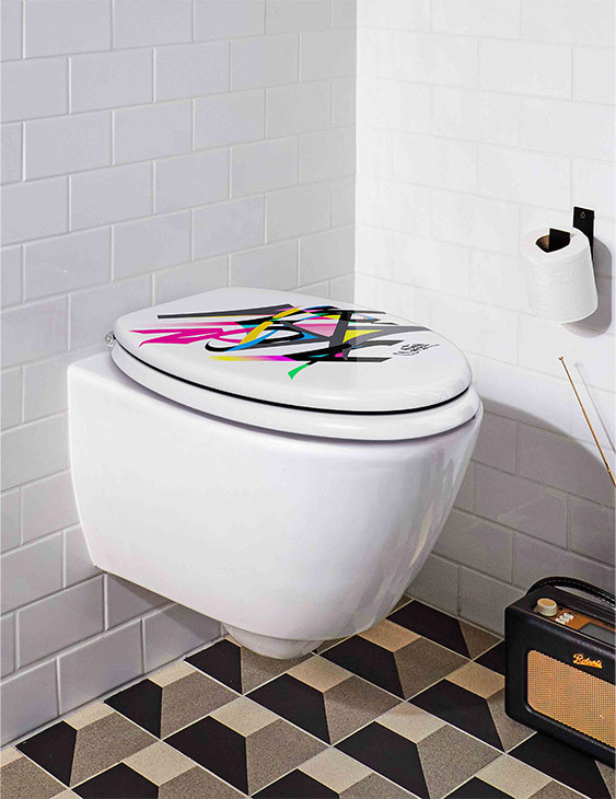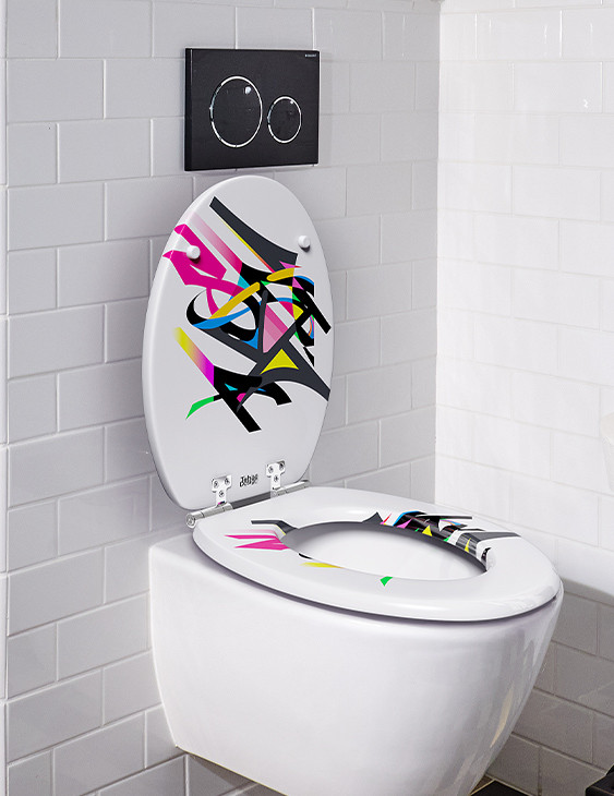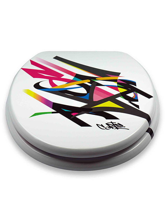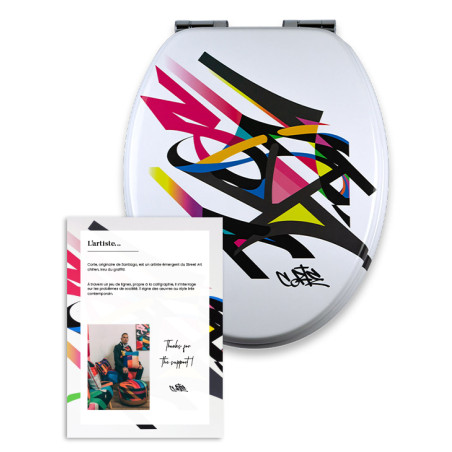 Cette lunette de WC chic et design signée Camilo Ortega F. donne une touche street art élégante à vos toilettes. Artiste Chilien émergent, Camilo Ortega F. alias Corte fait sortir le street art et réinvente le petit coin ! Avec "Saray03" pour TohaaDesign, du nom d'une ville turque de la région de Marmara, il intègre son art audacieux et coloré à votre quotidien.