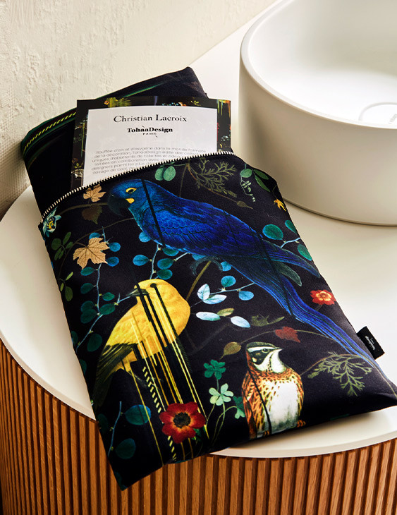 Né d’une collaboration exclusive entre la Maison Christian Lacroix et TohaaDesign, ce charmant rideau de douche apporte une énergie douce et lumineuse à votre intérieur. Sur fond blanc, il arbore le célèbre motif "Birds Sinfonia", emblématique de la maison Christian Lacroix. Une touche d’élégance pour une salle de bains unique !