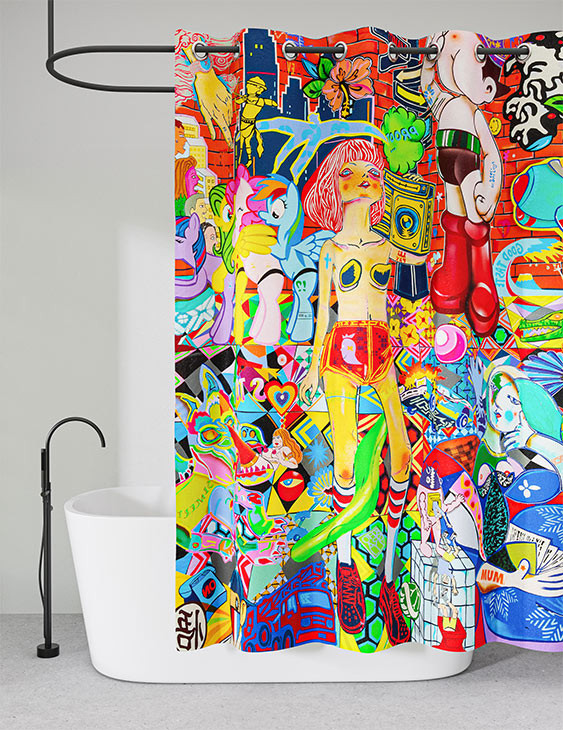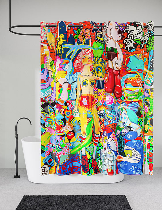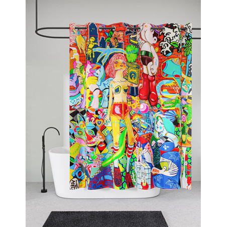Signé par l’artiste contemporain Guive Khosravi, ce rideau de douche "Vanity Fair " illuminera votre salle de bains. Ses couleurs chatoyantes et ses formes dynamiques lui confèrent un style unique, d’inspiration Pop-Art.