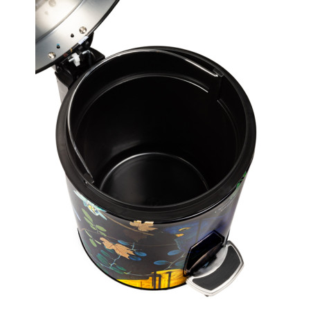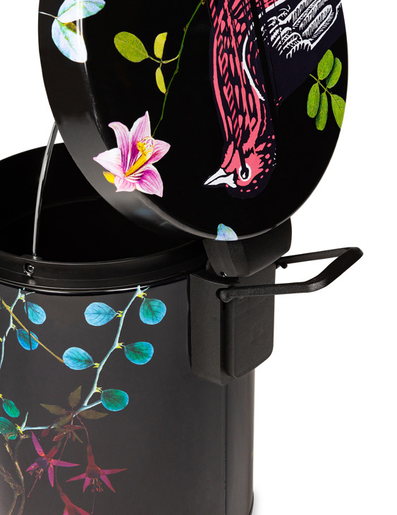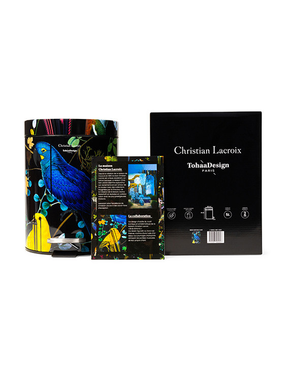 Maison Christian Lacroix has teamed up with TohaaDesign to bring you a unique bathroom wastebasket. This emblematic design by the prestigious Maison Lacroix "Birds Sinfonia", with its intense black background, comes to life with a swarm of birds in shimmering plumage tracing the musical staves of their own song.