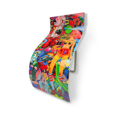 This original, colorful toilet paper holder model transports us into the pop and dynamic world of the talented Guive Khosravi. "Vanity Fair," which he created for TohaaDesign, immerses us in an explosion of vibrant tones and original graphics.